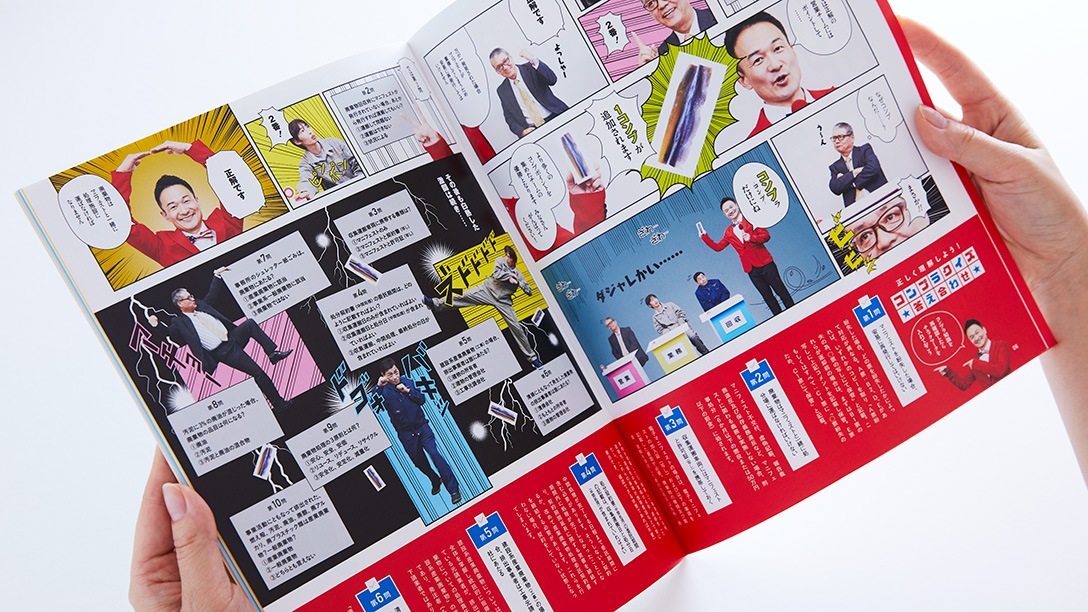 コンプライアンスという難しいテーマを分かりやすく訴求するためにはどうすべきか。そこで、コンプライアンスに関するクイズを出題し、読者が楽しみながらコンプライアンスについて理解でき、啓蒙につながるような企画を考えました。さらにより楽しくクイズの問題を学べるような工夫として、クイズ番組のようなセットを実際に作り、実写漫画化した形式にしてページ展開をさせたのが今回の企画の特徴です。漫画に関してはこちらでコマ割りを作り、ストーリーラフを制作した上で、実際に社員の方々にご協力いただき、ストーリー通りに演じていただきました。社長含め、社員の方々の人柄がいつもしっかりと伝わるのがこの社外広報誌のいいところ。社員のみなさんがどのように紙面に登場するか、それを楽しみにされる方もいるほどなので、気合も入ります。そしてこのマガジンのポイントは、インナーブランディングにも使えるところです。取引先や地域住民への企業パーソナリティの浸透のほか、これにより社内のモチベーションが上がったという声もいただきます。社員のみなさんが自社を愛せるような、素敵な媒体でもある。そういう思いで今後も制作できればと思っています。