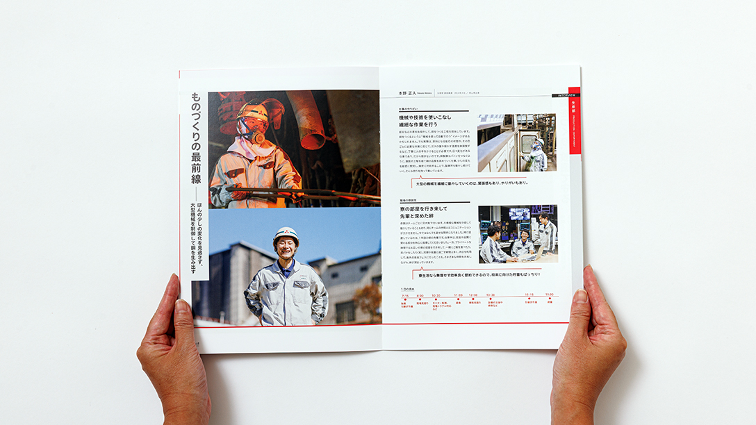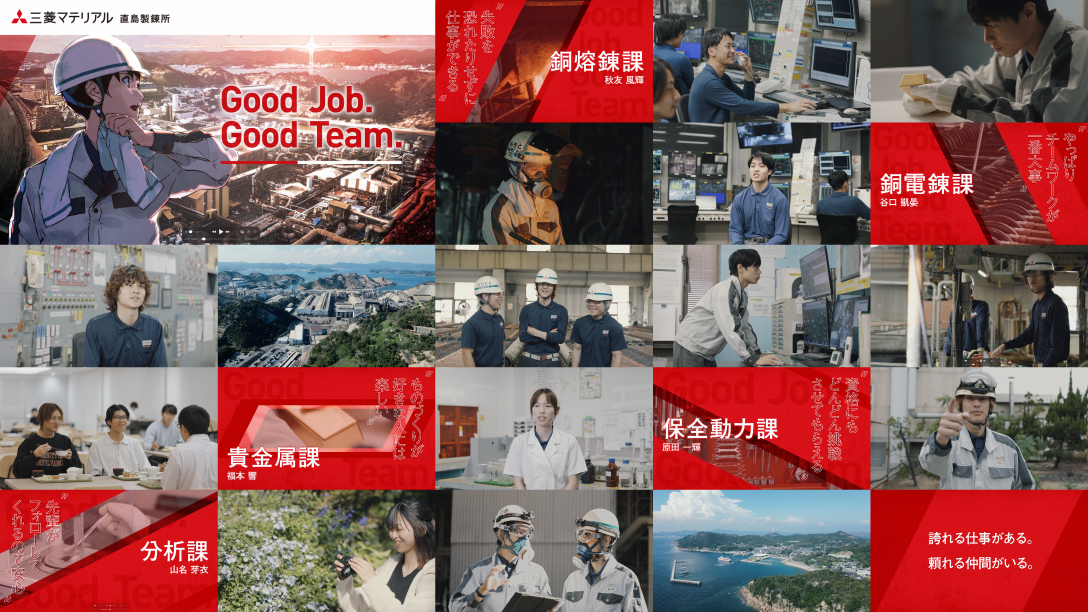 リニューアルの結果、単なる業務説明に留まらない、企業の「体温」が伝わる採用ツールが完成しました。表紙から続くエモーショナルなビジュアル展開は、高校生の興味を惹きつけ、ページをめくるごとに仕事へのモチベーションを高める構成となっています。また、福利厚生や教育体制などの「納得感」のある情報を整理して掲載することで、保護者や教員への説得材料としても機能するツールとなりました。映像やポスターと連動した多角的な展開により、ターゲットに対して「三菱マテリアル直島製錬所」のブランドイメージを深く、正しく浸透させることに貢献しています。