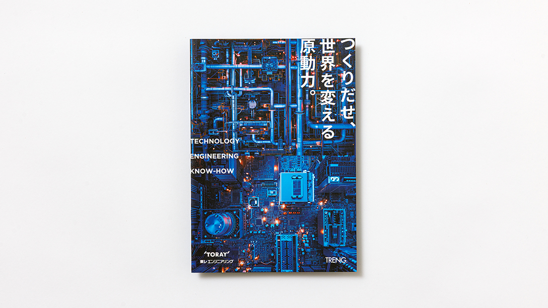 企画構成、アートディレクション、および取材・撮影を含むトータルデザインを手掛けています。同社は、プラントエンジニアリングとメカトロファインテックという二つの事業を柱とする「二刀流」の強みを持ち、東レグループ由来の「Technology(施工技術)」「Engineering(工学知識)」「Know-how(ノウハウ)」を駆使して社会課題を解決する総合エンジニアリング企業です。新卒向け採用案内パンフレットのデザイン制作では、企業のコアバリューである「Solution」を体現すべく、「ピュアでストイックな姿勢」をデザインコンセプトに設定しました。余計なノイズを一切排した透明感と、プロフェッショナルが真摯に技術と向き合う心地よい緊張感を、ブルーを基調とした先鋭的なトーン&マナーで表現しています。